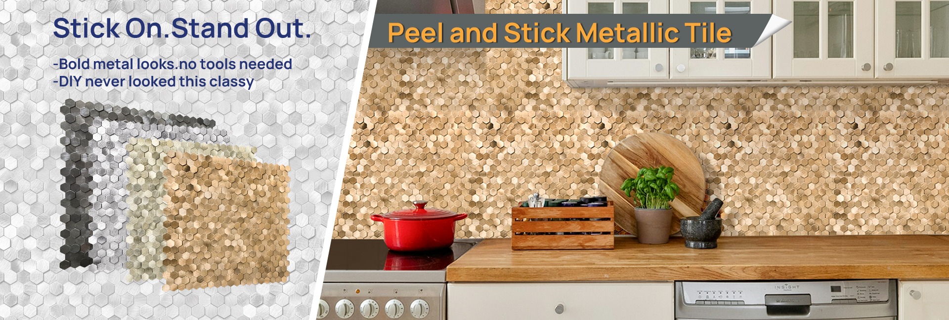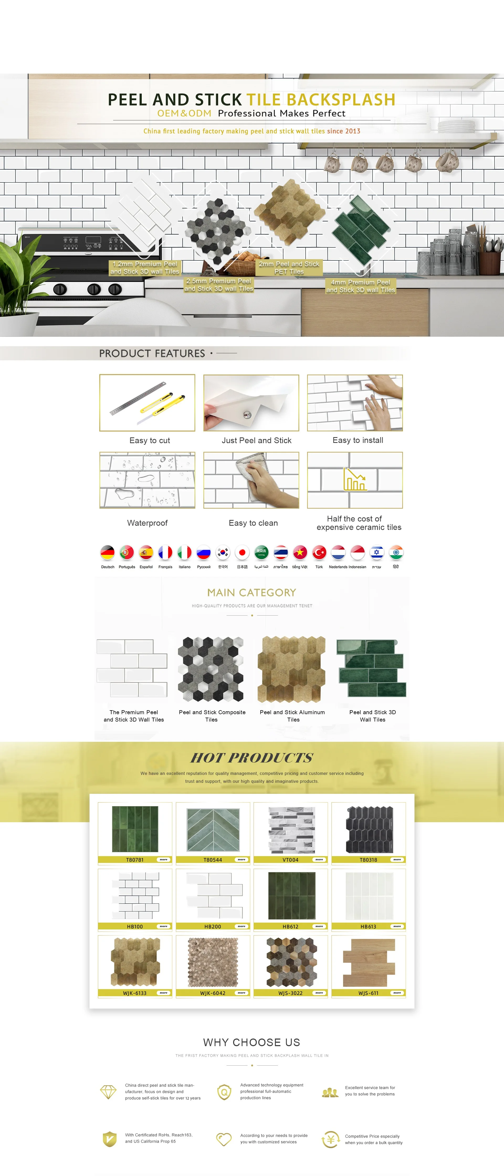 六角モザイクタイルアルミ皮とスティックバックスプラッシュキッチン装飾用粘着タイル